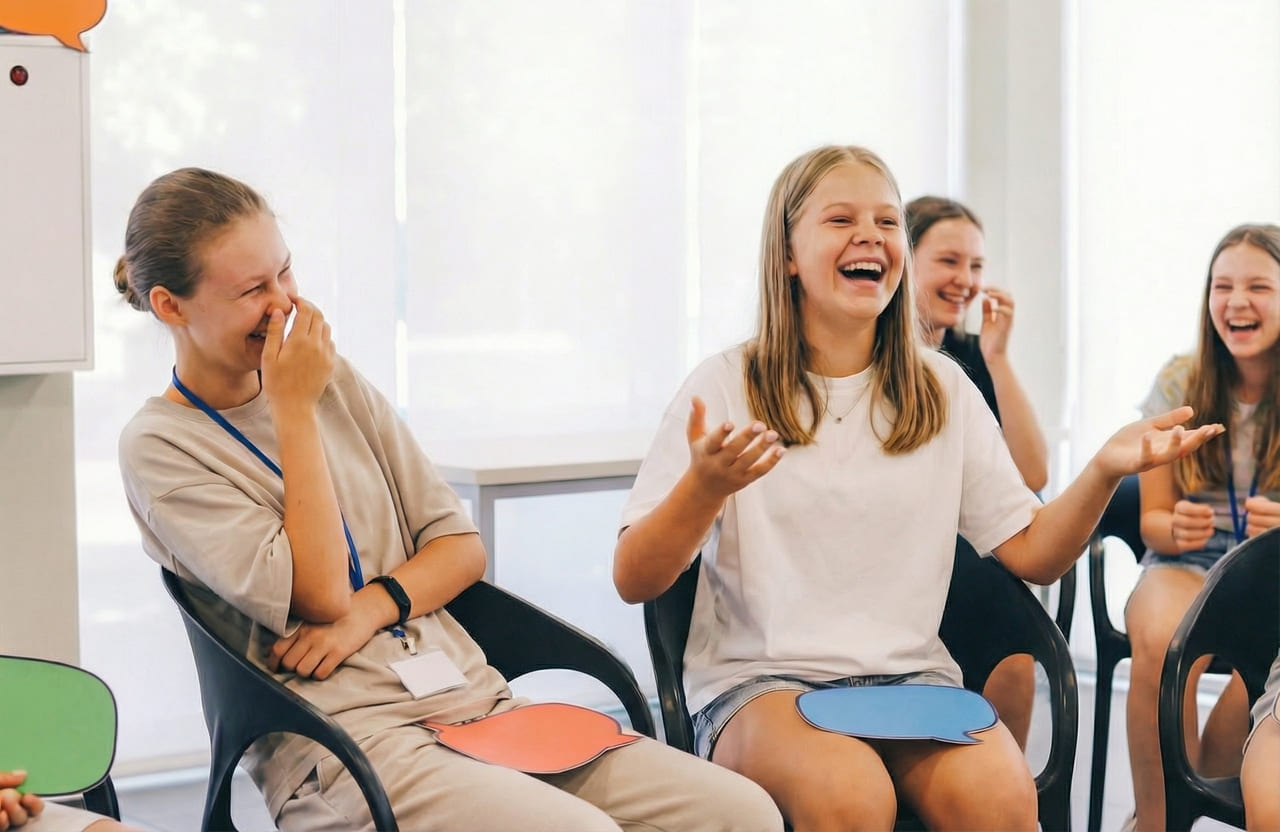 Розважальні speaking clubs та активний час щодня з носіями мови. Діти та підлітки починають говорити англійською природно та без страху.